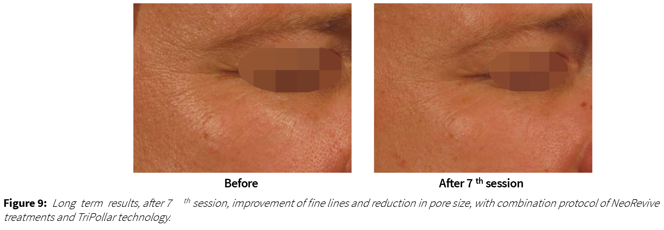 Digital photographs of subjects demonstrated an overall improvement in skin appearance immediately after treatment and following last treatments. Treatment effects included a general improvement of skin texture, indication for reduction of pore size and general brightening of skin tone. In some cases a visible improvement of periorbital wrinkles was noticed.
