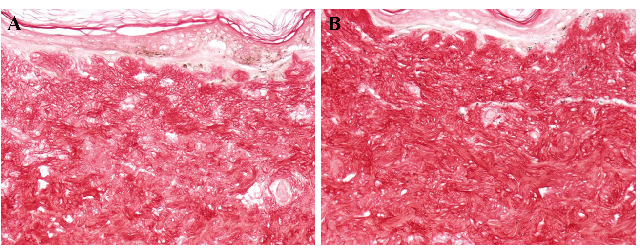 Histological quantification of dermal elastic fibers