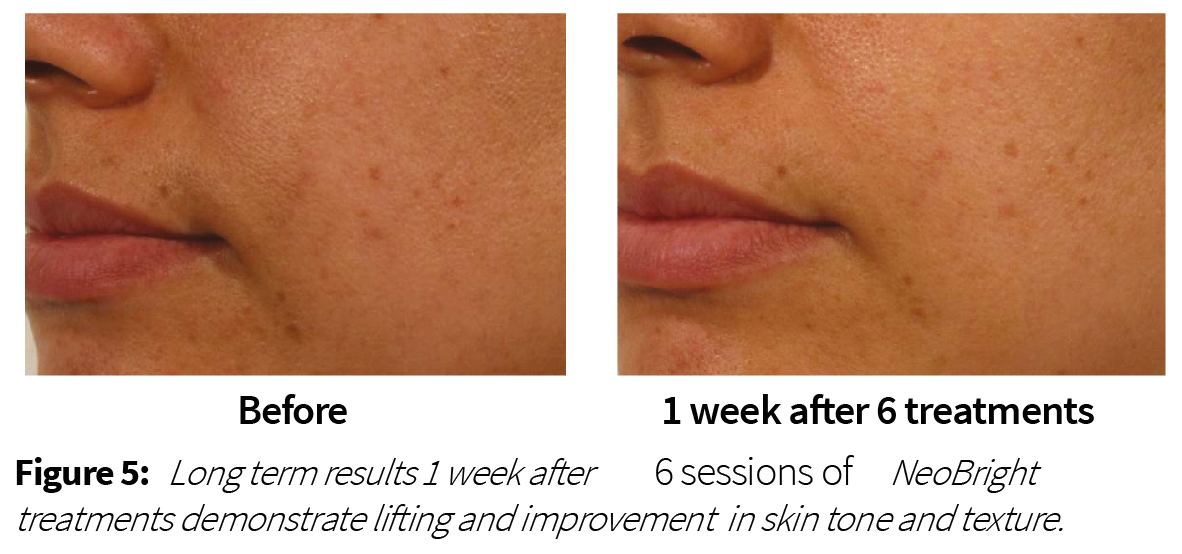 Figures 4-5 demonstrate immediate and long-term clinical results after NeoRevive, NeoBright or combination treatments.