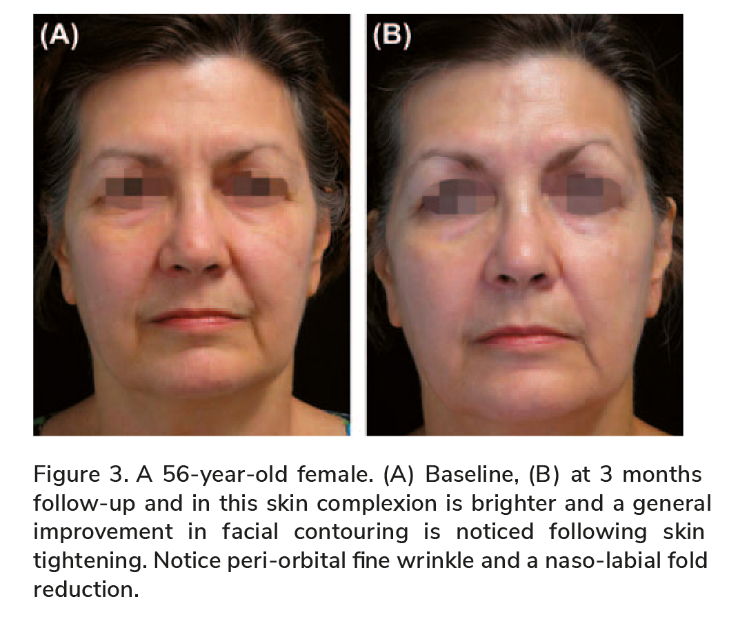 Skin laxity, photodamage, appearance of visible lines and wrinkles, and an overall decline in skin texture are typical characteristics of aging human skin (1). An increased demand for aesthetic treatments for enhancing appearance has led to the development and introduction of a myriad of technologies and treatment options. Skin resurfacing has been shown to be highly effective for improving a wide variety of aging skin symptoms, resulting in epidermal renewal and a better organized and newer dermal matrix. Numerous methods are available for skin resurfacing, including chemical peels, dermabrasion, lasers, and recently fractional RF (2).