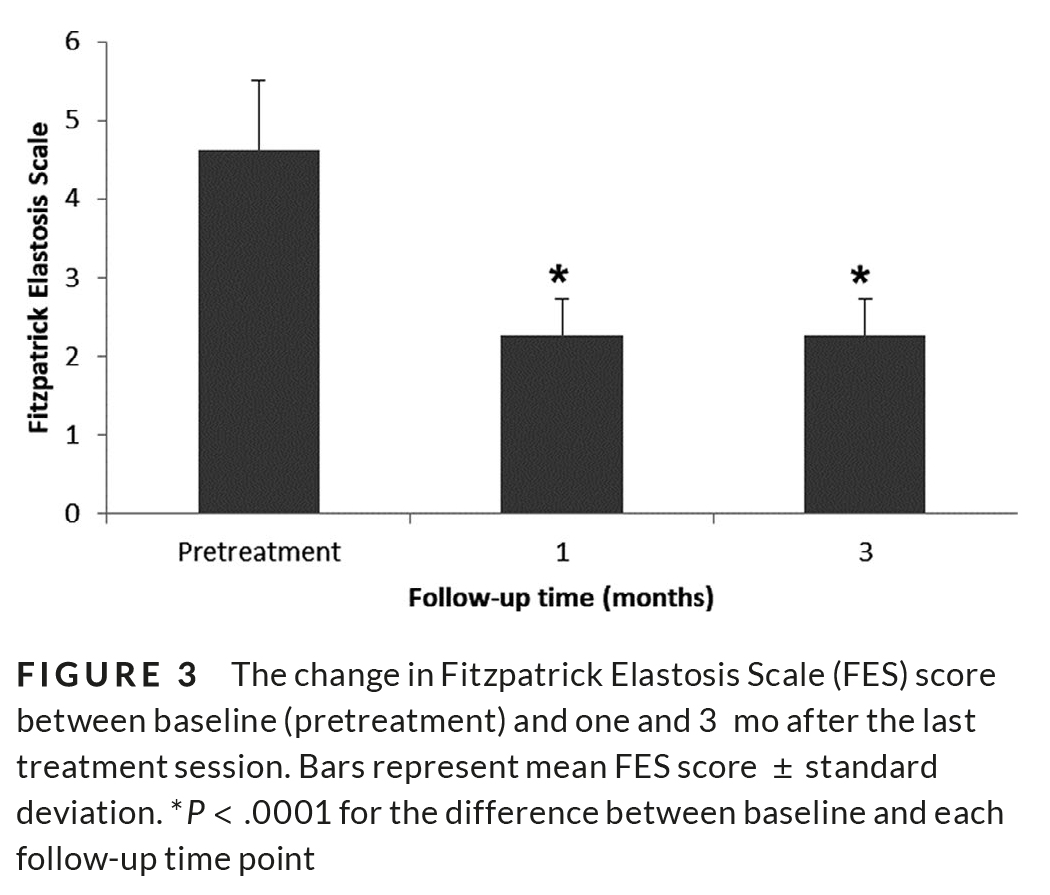 The investigator and subjects independently graded the skin’s improvement by comparing the subject’s visual appearance at fol-low-up against an archival photograph taken at baseline. Evaluator-rated change in skin texture and wrinkles was evalu-ated by the FES.