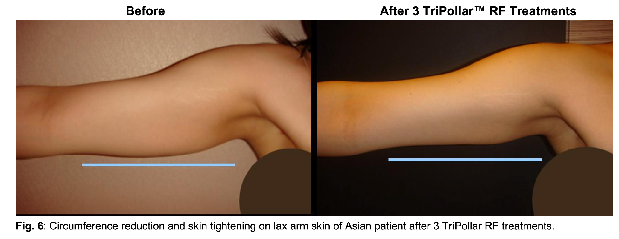 Conclusions This clinical study concluded a very good overall improvement in skin laxity and circumference reduction with absolutely no downtime for any patients. The TriPollar RF treatments are safe and effective for skin tightening and circumference reduction on Asian skin types. Further studies are needed to optimize the number and frequency of treatments.