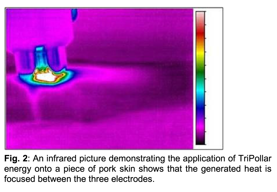 Radiofrequency energy for medical procedures has been used for many years. When applied to tissues between two electrodes the RF current generates heat through resistance of the dermis and subcutaneous tissue. This source of heat has been extensively used in surgery for hemostasis and tissue ablation (electro-surgery), but more recently it has been applied as a means of shrinking redundant or lax connective tissues through the mechanism of collagen denaturation. Collagen molecules are produced by fibroblasts which synthesize three polypeptide chains that wrap around one another in a triple helix. The phenomenon of thermal shrinkage of collagen begins with the denaturization of the triple helix of the collagen molecule. When collagen is heated, the heat-labile intra-molecular cross-links are broken, and the protein undergoes a transition from a highly organized crystalline structure to a random, gel-like state (denaturation). Collagen shrinkage occurs through the cumulative effect of the “unwinding” of the triple helix, due to the destruction of the heat-labile intra-molecular cross-links, and the residual tension of the heat-stable intermolecular cross-links (Ref 1). Heated fibroblasts are also implicated in new collagen formation and subsequent tissue remodeling which can also contribute to the final cosmetic result. The precise heat-induced behavior of connective tissues and the extent of tissue shrinkage are dependent on several factors which include the maximum temperature reached, exposure time, tissue hydration and tissue age.